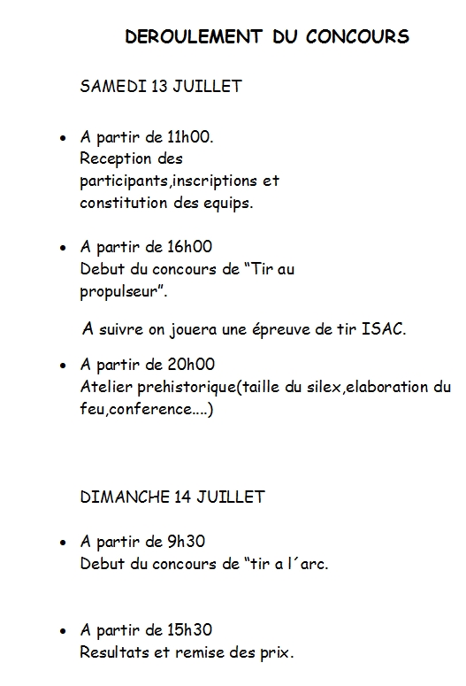 Errentaria célèbre, avec une année de plus, une manche de championnat de tir à l’arc et au propulseur préhistorique. Pour cette occasion, vous avez, ci joint, le bulletin d’inscription, le programme des activités et un plan d’accès.